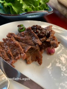Korean BBQ is essentially grilling your food yourself using in-built gills in the dining table itself. I am not sure there are any other authentic Korean BBQ places in Lagos (if you know others, do give me a shout)