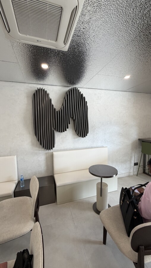 MaMatcha is a clean, minimal, metallic-style café tucked away in Lekki Phase 1. The space is clearly designed with intention — but not necessarily for long sit-downs. Indoor seating is quite limited, which gives more of a grab-and-go or quick hangout vibe, while the outdoor area includes a pickup window and a few seating options.