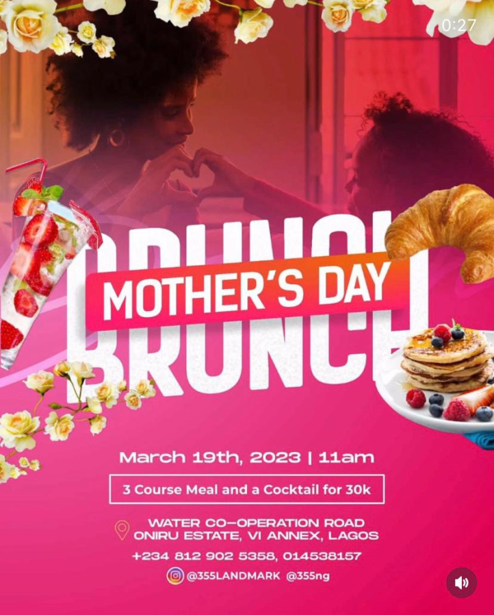 355 Landmark would be serving 3 Course Meal and a cocktail for just ₦30,000. It does sound like a good deal and a special treat for your amazing mum.