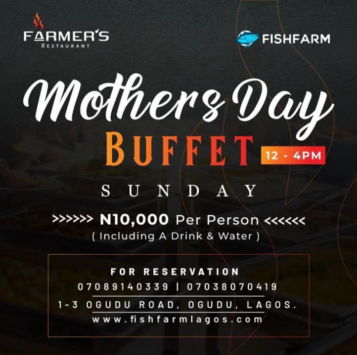 Farmer’s restaurant is located in fish farm, Ojudu. The restaurant recently opened, and for Mother’s Day, they would be having a buffet from 12pm-4pm for just ₦10,000 per person. This offer comes with unlimited drink and water.