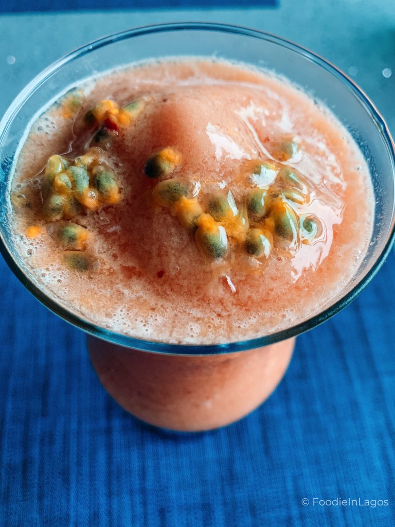 Also passed on having a cocktail because I was going to be driving – don’t drink and drive guys. I had what was meant to be a mocktail but turned out to be a smoothie. Totally enjoyed this – was called the Veranda Passion – Fresh Mango, Passion Fruit, Strawberry & Orange N4,000 from the poolside menu.